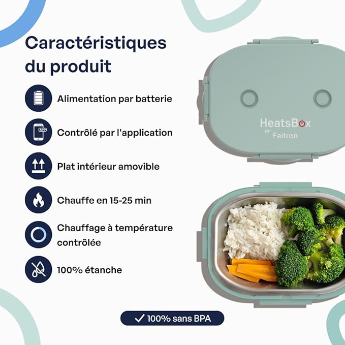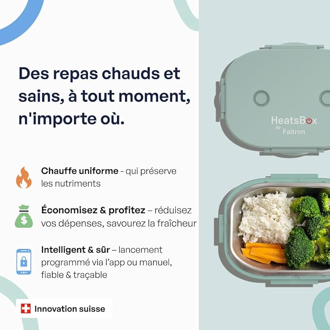 La boîte à déjeuner chauffante compacte est idéale pour les enfants, les étudiants et les adultes à la recherche d’une solution légère, sécurisée et autonome pour manger chaud partout. Grâce à son format réduit et à son fonctionnement sans micro-ondes, cette boîte repas chauffante compacte accompagne parfaitement les journées actives, à l’école comme en déplacement.