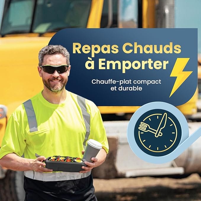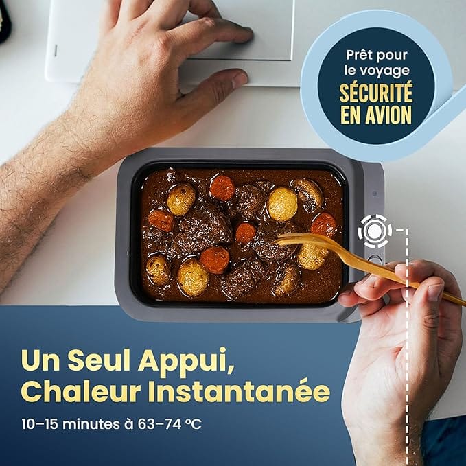 La gamelle chauffante sur batterie rechargeable est conçue pour celles et ceux qui veulent manger chaud rapidement, sans micro-ondes ni prise électrique. Grâce à son système de chauffe performant, votre repas est prêt en 7 à 10 minutes, d’une simple pression sur un bouton.