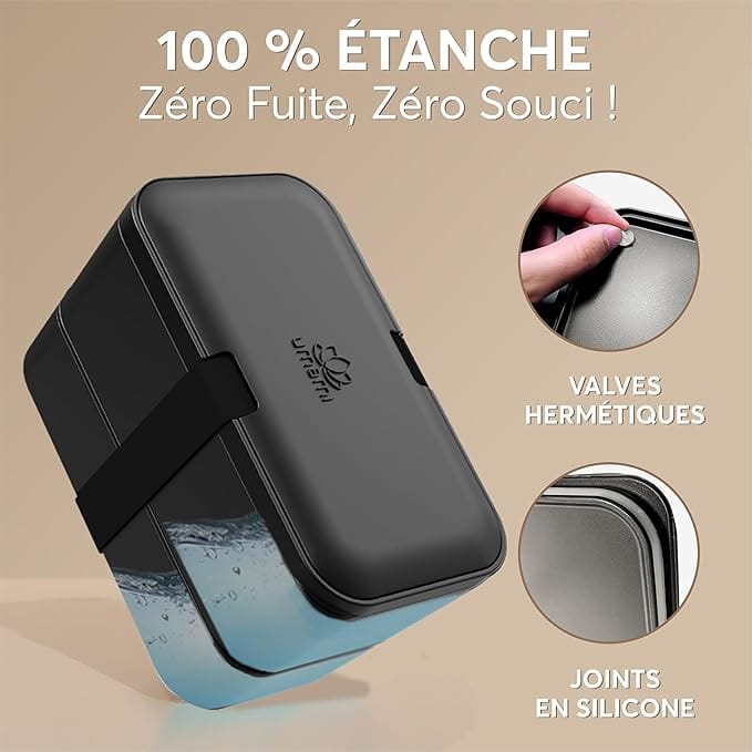 Grâce à ses joints et valves en silicone, cette lunch box chauffante bureau 220V est totalement étanche.
