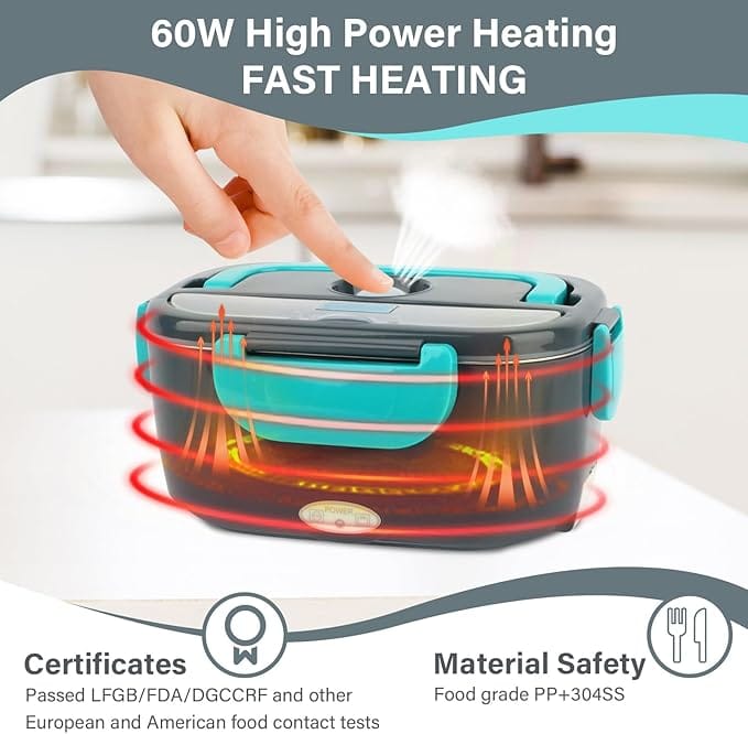 Grâce à une puissance de 60W et à la technologie de chauffage PTC à température constante, cette lunch box chauffante électrique chauffe les aliments de manière homogène.