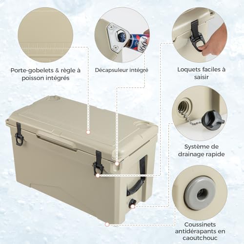 Cette glacière rigide grand volume est idéale si vous recherchez un modèle capable d’offrir à la fois une excellente autonomie de froid, une forte résistance et une capacité généreuse. Elle convient particulièrement aux utilisateurs qui ont besoin d’un équipement fiable pour plusieurs jours, sans compromis sur la solidité ni sur le confort d’utilisation.
