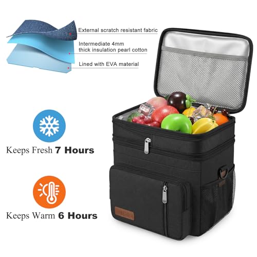 Le sac isotherme repas 15L double niveau offre une grande capacité avec deux compartiments séparés pour mieux organiser aliments et boissons. Doté d’une isolation PEVA anti-fuite, il conserve efficacement le froid ou le chaud jusqu’à 7 heures, idéal pour les journées complètes et les sorties.